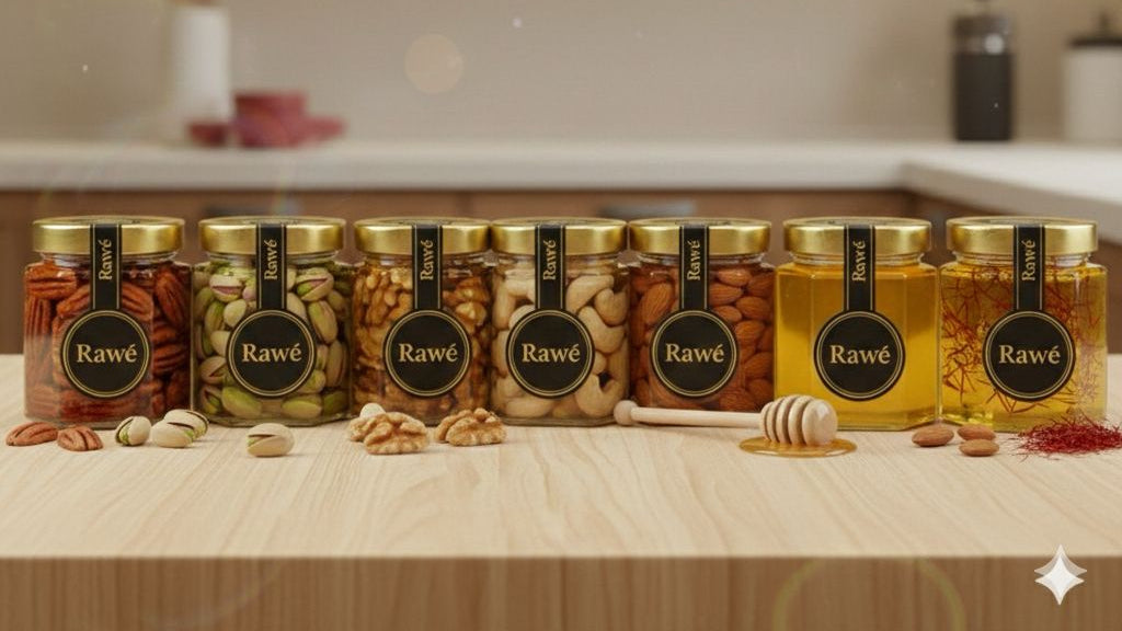At Rawé, nature and craftsmanship converge in a wholesome indulgence. Each jar is a celebration of simplicity and intention. Pure, golden rare Acacia honey blended with premium whole nuts, stirred by hand to preserve every bit of goodness. We believe true indulgence should feel nourishing, so every ingredient is chosen for purity and quality. From the hive to your table, every step is guided by purpose and precision, resulting in an elegant, honest spread that elevates your everyday snacking ritual.